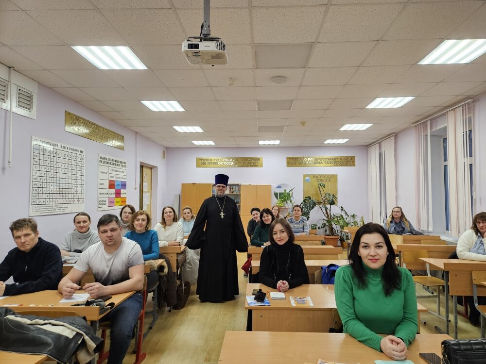 1 февраля в Средней школе №2 пос. Нахабино состоялось общешкольное родительское собрание, на которое был приглашён клирик Знаменского храма г. Красногорска иерей Сергий Генченков.