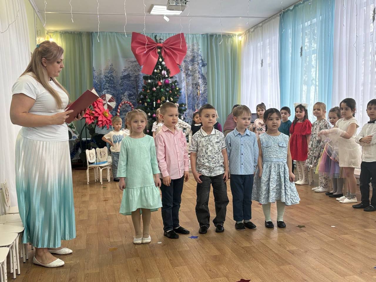 Ребята встречали гостя стихами и рождественскими песнями, водили хороводы и с удовольствием играли в праздничные игры.