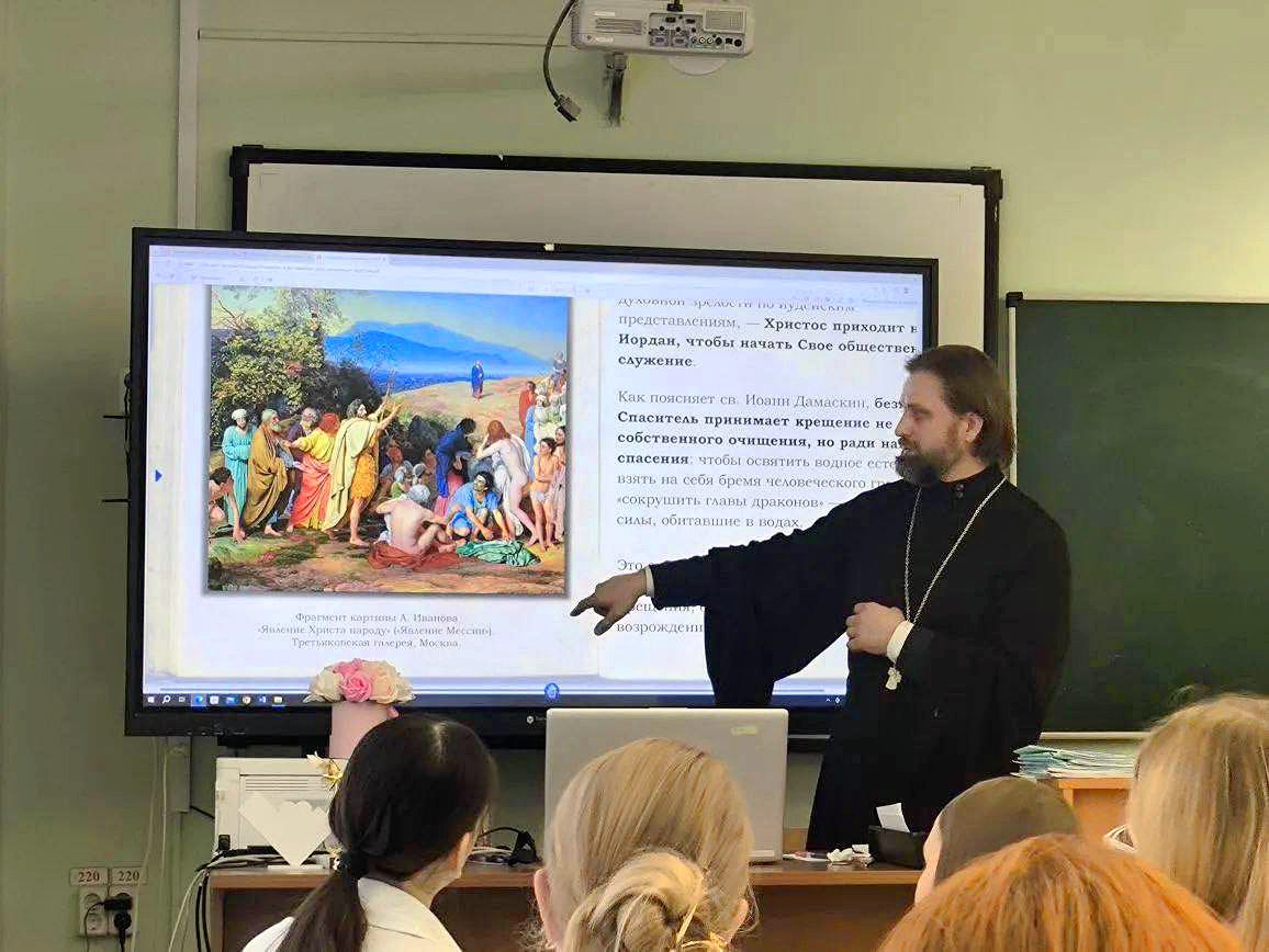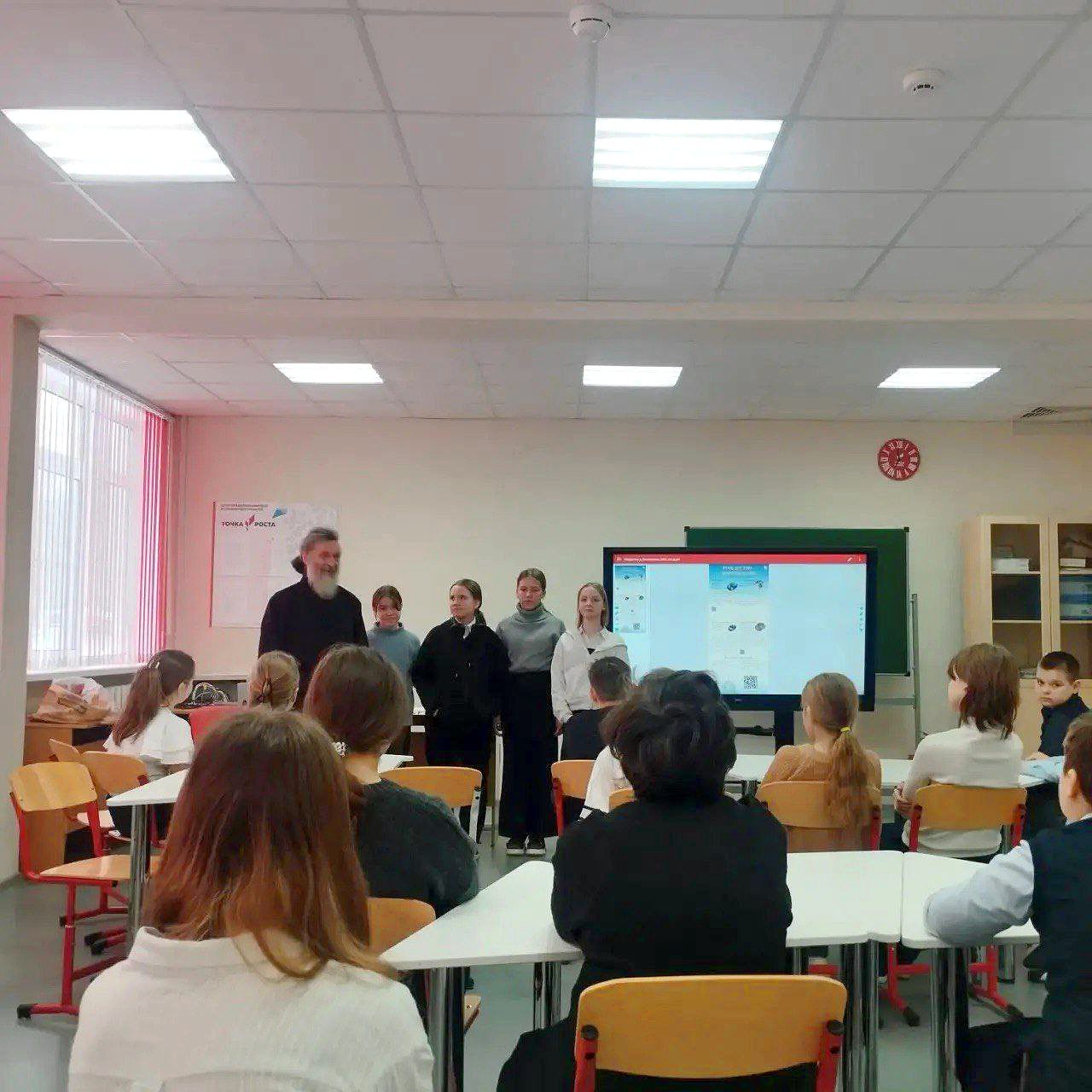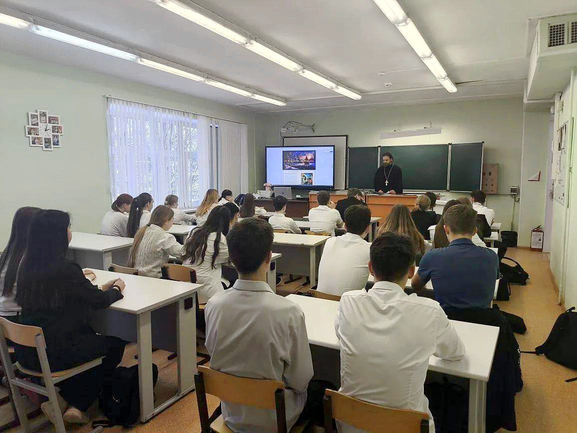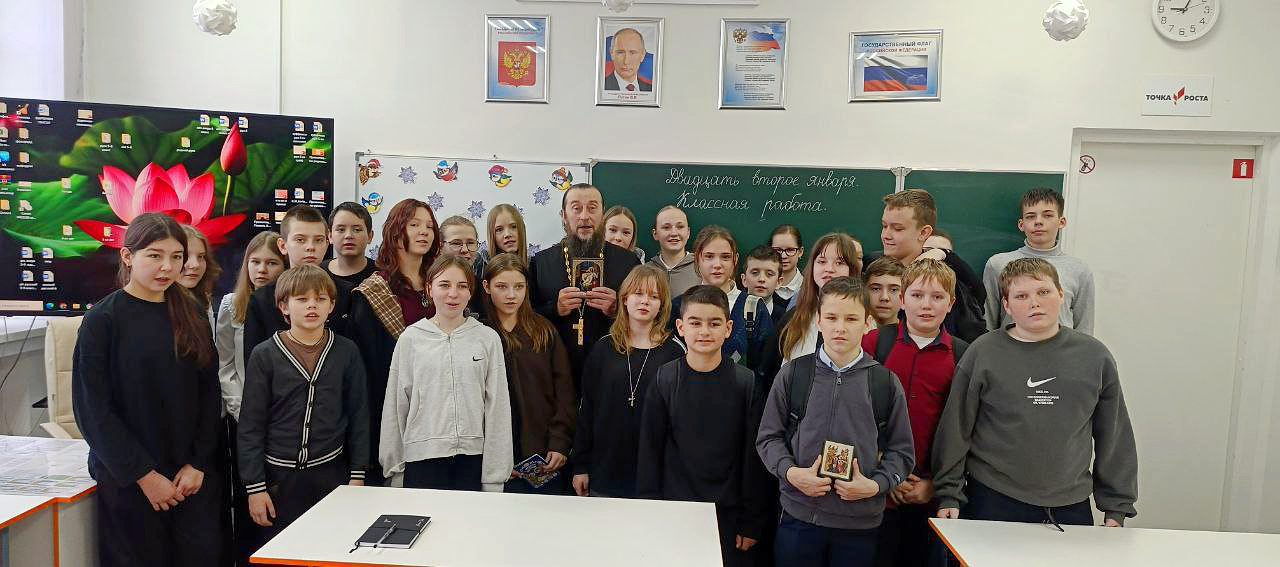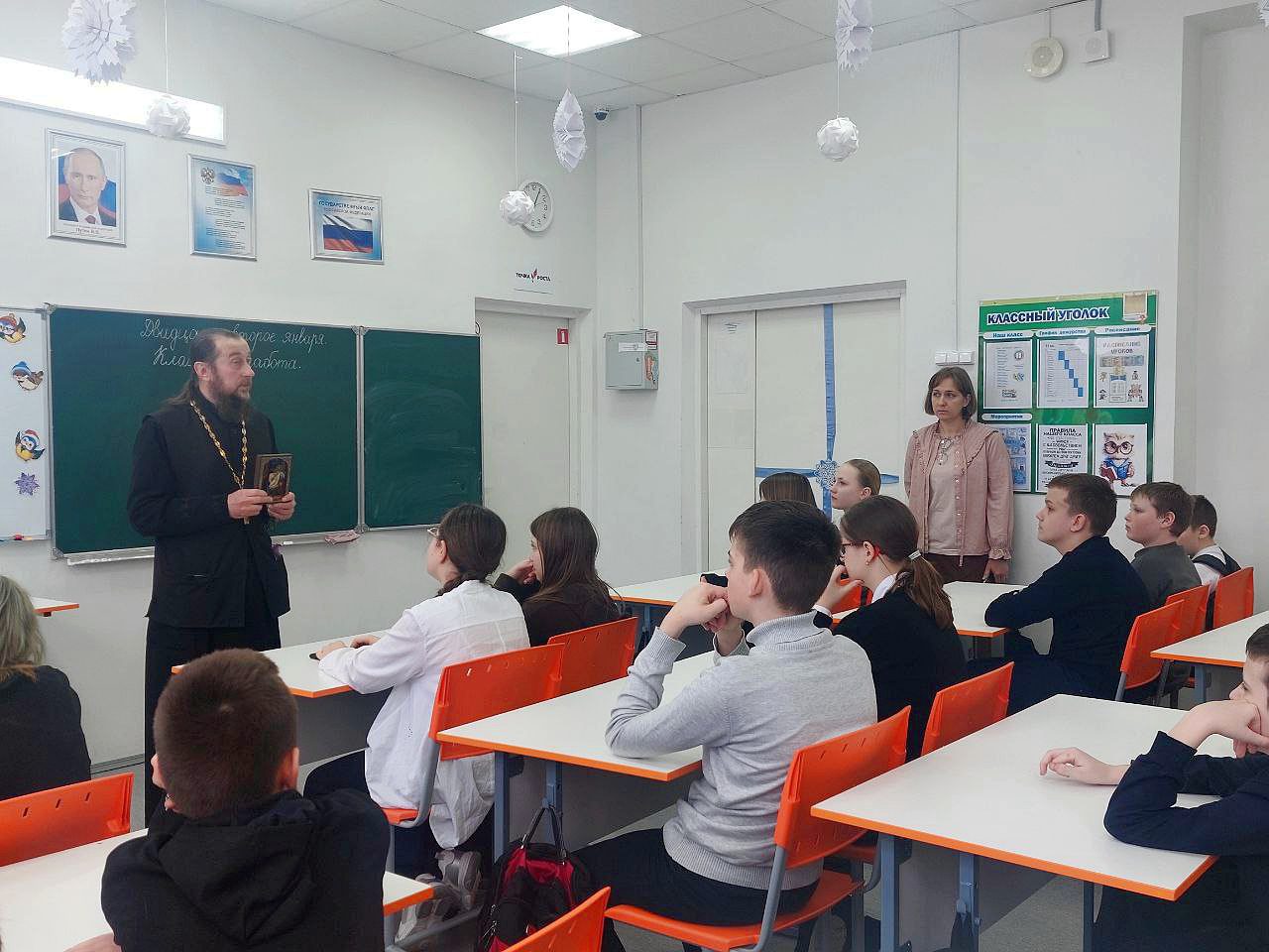 21 января беседы прошли в трёх школах. Протоиерей Олег Ковалев выступил перед пятиклассниками в Колюбакинской школе. Иеромонах Антоний (Игнатьев), насельник подворья московского Свято-Данилова монастыря, встретился с учениками Нововолковской школы.