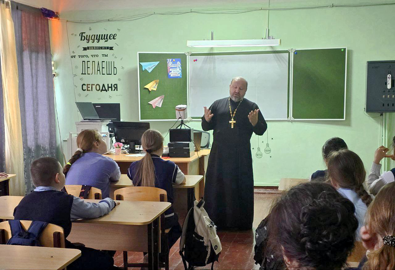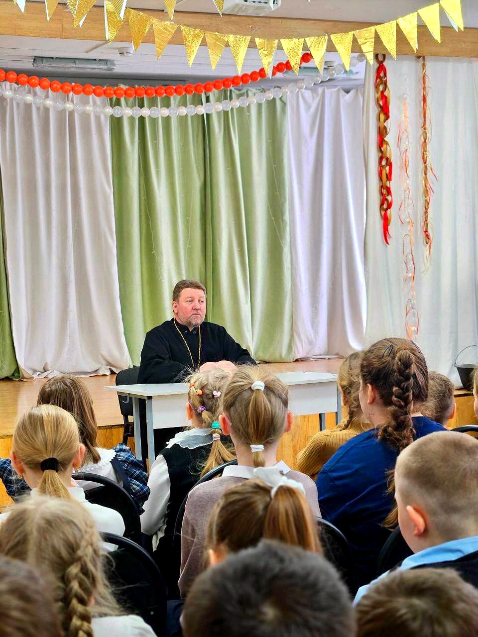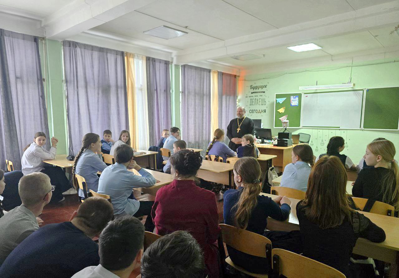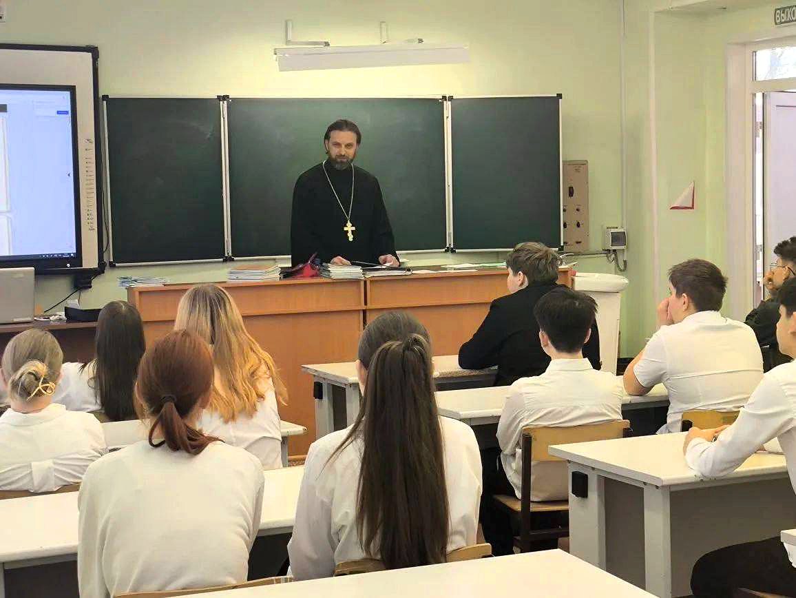 21 января беседы прошли в трёх школах. Протоиерей Олег Ковалев выступил перед пятиклассниками в Колюбакинской школе. Иеромонах Антоний (Игнатьев), насельник подворья московского Свято-Данилова монастыря, встретился с учениками Нововолковской школы.