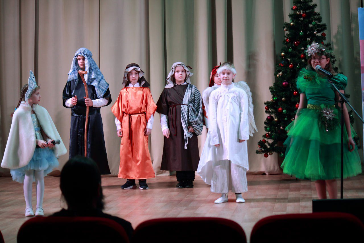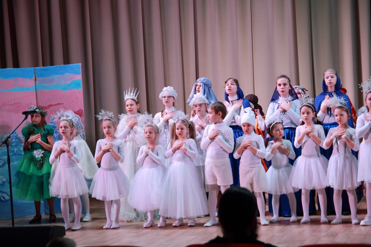 Спектакль начался с исполнения тропаря Рождества Христова. Затем воспитанники воскресной школы исполняли рождественские песни, читали стихи и рассказали историю Снегурочки, которая не знала про праздник ничего, но полюбила его всем сердцем.