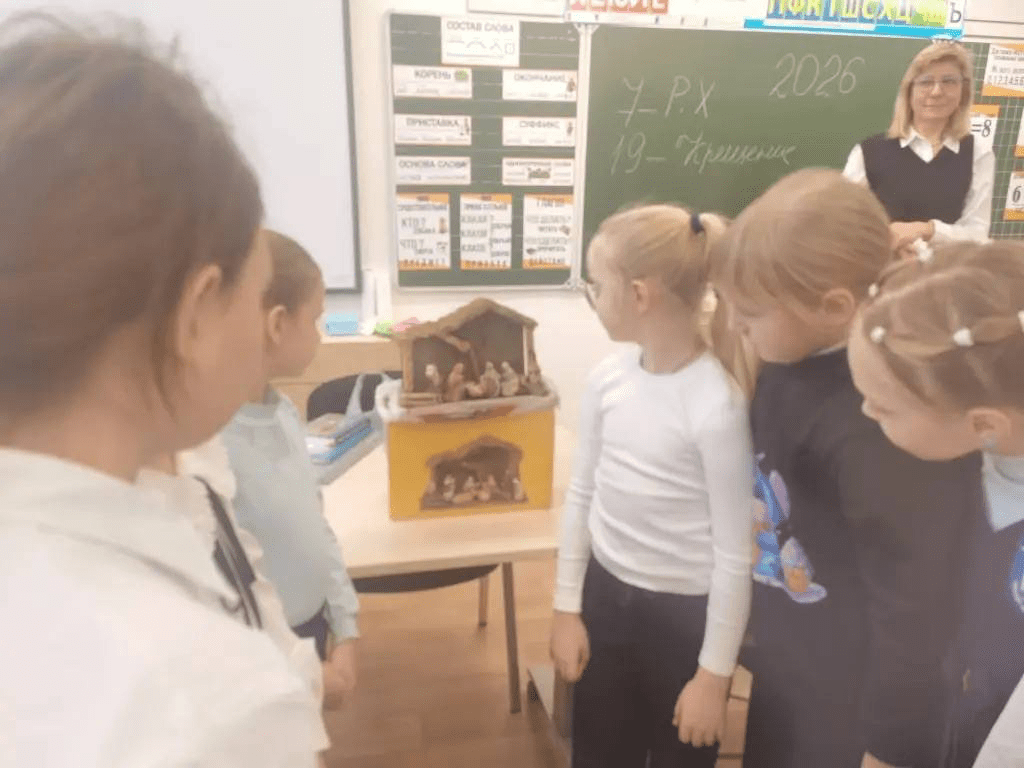 21 января преподаватель воскресной школы и миссионер-катехизатор Афонина С.В. провела два занятия для начальных классов МОУ «Глебовская СОШ». Тема урока — «Рождество и Крещение Иисуса Христа. Праздник Богоявления». Дети с большим интересом рассматривали вертеп, изучали фигурки Богоматери, младенца Иисуса, Иосифа, пастухов и волхвов.