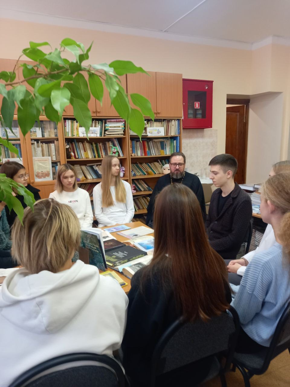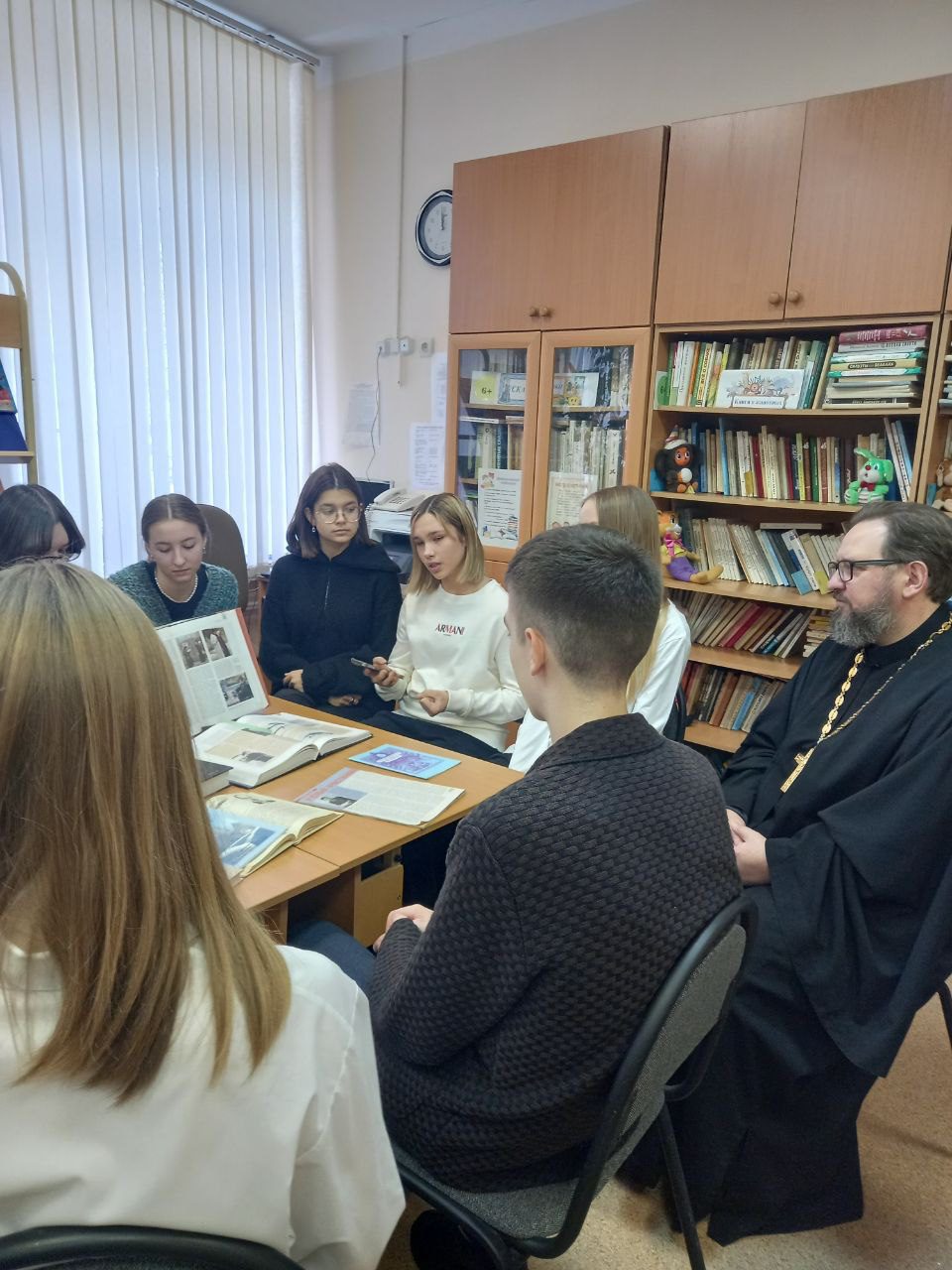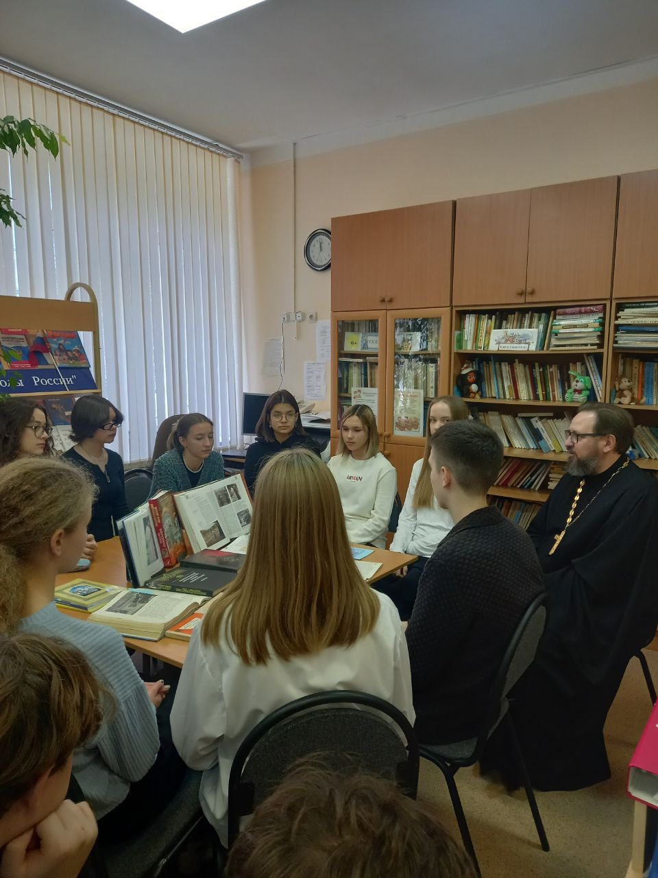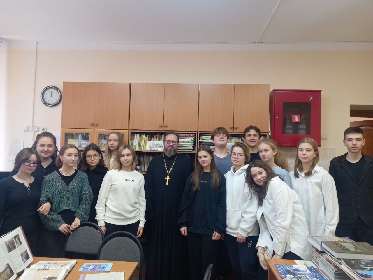 1 декабря, в рамках Рождественских чтений, в библиотеке школы №2 г. Истра состоялась встреча настоятеля Мироносицкого храма г. Истра священника Павла Малкина с учениками девятого класса. Ребята подготовили небольшие доклады, в которых рассмотрели жизнь известных людей России, ставшими знаменитыми в различных областях науки, культуры, медицины. Главное внимание было уделено вере этих людей и тому, что вера в Бога не мешает человеку добиваться великих достижений. Художник Нестеров, ученая монахня Серафима (Черная), врач и епископ, святитель Лук Крымский, ученый Б.В. Раушенбах, преподобномученица Елизавета Федоровна – все эти выдающиеся личности были глубоко верующими людьми. В заключении священник Павел ответил на вопросы девятиклассников. В библиотеку школы от прихода Мироносицкого храма были переданы книги по истории Истринского района.