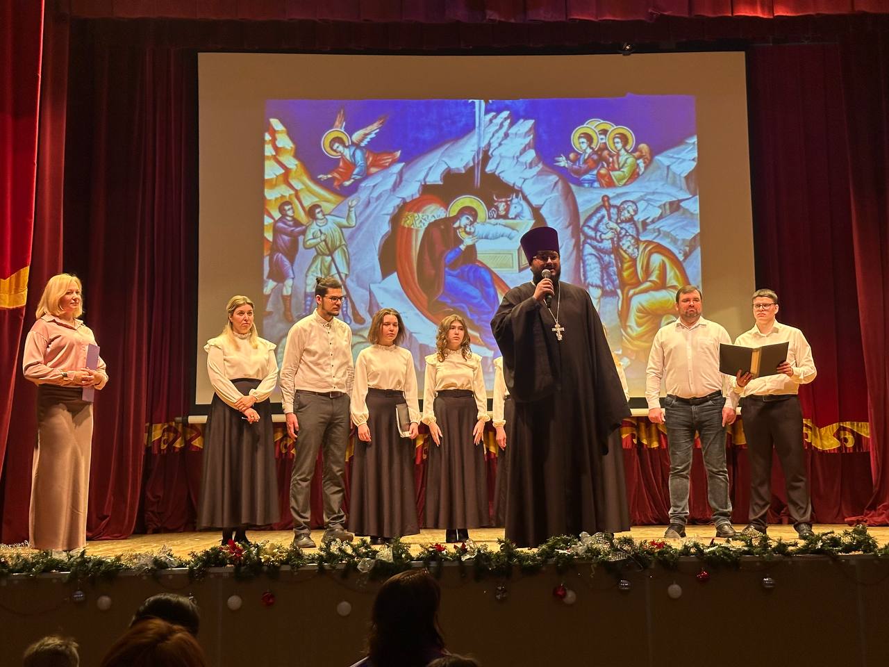 11 января в Истринском Доме культуры состоялся Рождественский концерт. Перед началом выступлений ко всем присутствующим обратился заместитель благочинного Истринского благочиннического округа иерей Петр Дударев, который передал поздравления от благочинного протоиерея Сергия Еремина. В своем слове иерей Петр поприветствовал собравшихся, особо подчеркнул, что пришествие в мир Богомладенца Христа явилось началом нашего спасения, пожелал всем здравия и Божией помощи. Праздник украсился выступлениями праздничного хора Мироносицкого храма г. Истра, русским танцем воспитанников воскресной школы Никольского храма с. Никулино, хоровых и танцевальных творческих коллективов Истринского ДК. В фойе для всех собравшихся были приготовлены угощения и чай.