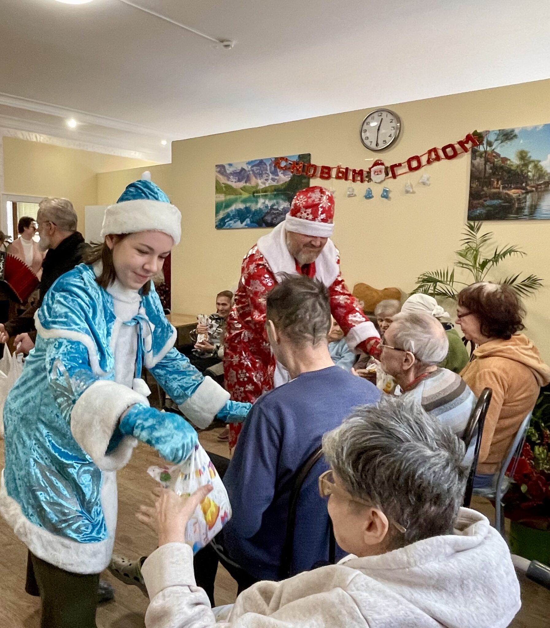 Каждая встреча завершалась вручением сладких подарков и исполнением знакомых новогодних песен, создававших атмосферу тепла и радости.