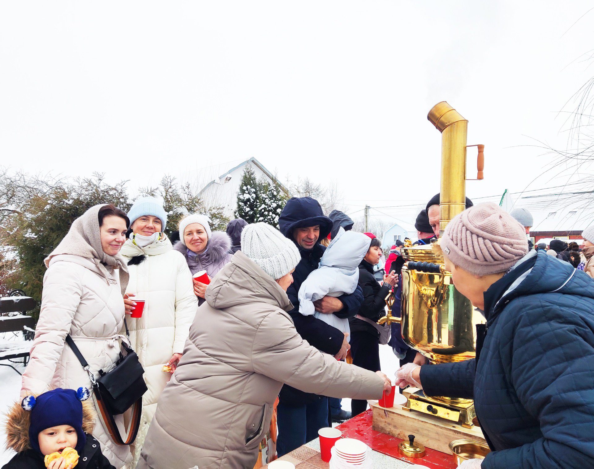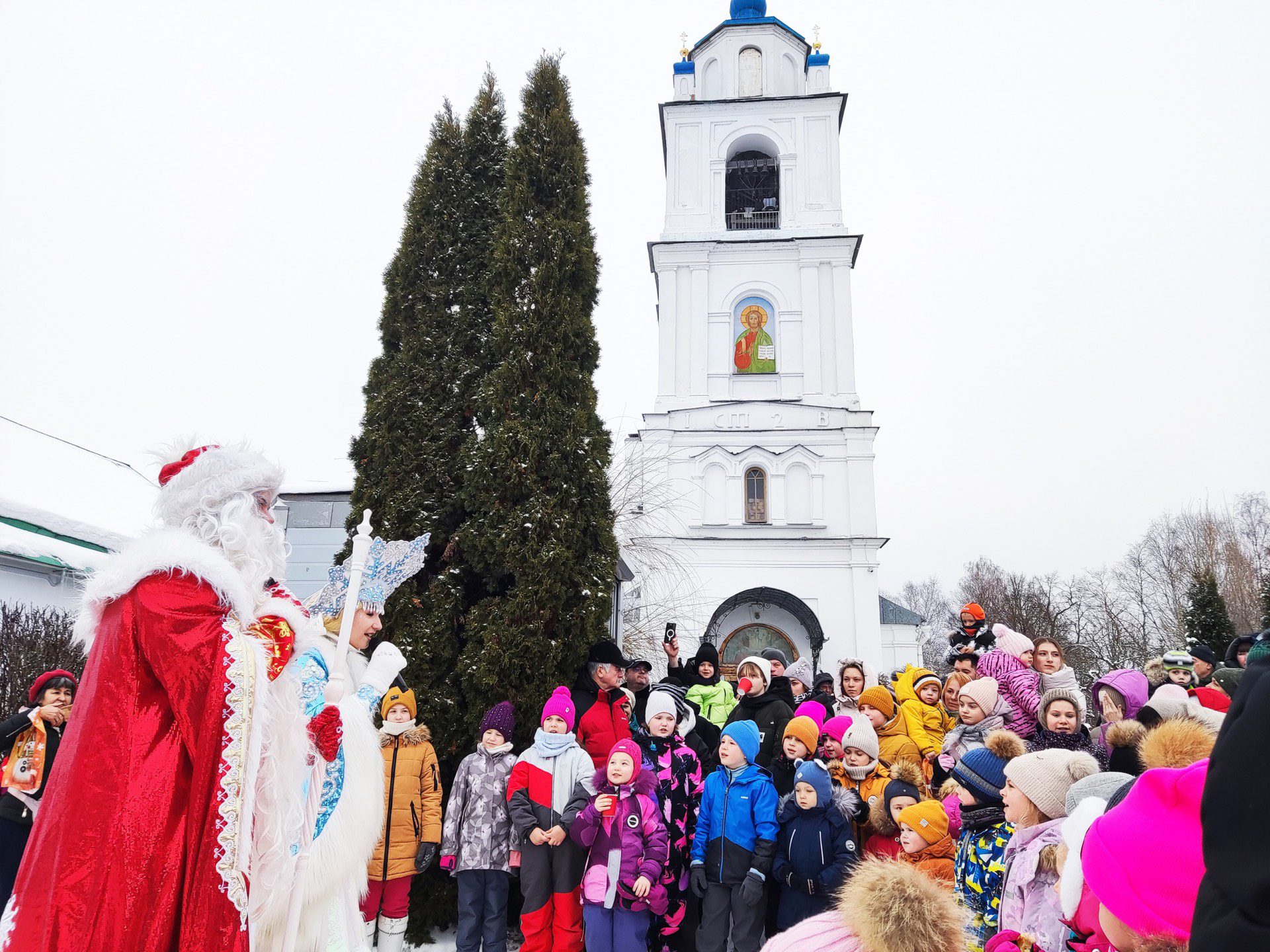 Праздник продолжился на территории храма, где гостей ждали вкусные угощения и горячий чай из самовара. Ребята по традиции весело провели время с Дедом Морозом и Снегурочкой, потанцевали, поиграли в зимние забавы.