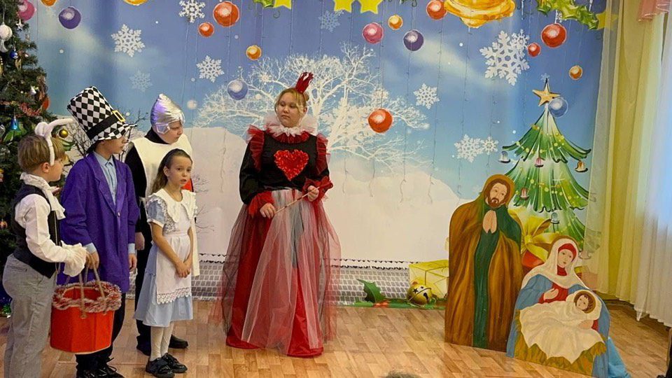 12 января состоялся праздник в Воскресной школе при храме Преображения Господня. Ребята младшей группы рассказали стихи, а старшая группа выступила перед прихожанами со спектаклем “Алиса в стране Рождества”, все вместе дружно спели рождественские песни и в награду получили полезные и вкусные подарки от настоятеля.