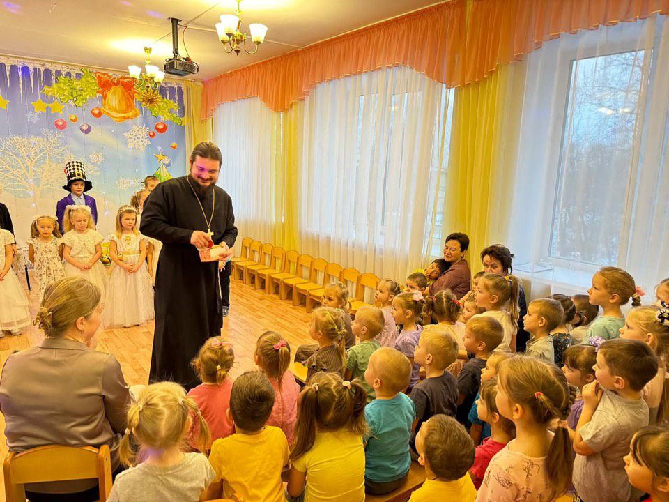 15 января воспитанники Воскресной школы во главе с настоятелем, иереем Никитой Митякиным, поспешили поделиться рождественской радостью с ребятами и педагогами из детского сада N 18 с. Спасс. Батюшка выступил с приветственным словом к детишкам, разъяснил чей день рождения мы празднуем в эти дни, и почему этот праздник так важен. Ребята из Воскресной школы вновь сыграли спектакль “Алиса в стране Рождества”. В конце встречи всё воспитанники сада и артисты получили рождественские медали за проявленный интерес и актёрский талант.