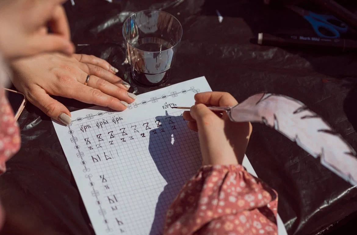 И взрослые, и юные прихожане, как оказалось, хорошо знают историю этого праздника и его главных героев – святых Кирилла и Мефодия. Родители отлично справились с предложенным кроссвордом на эту тему. Детей же ждал непростой мастер-класс по изготовлению перьев. Интересно было этим пером выводить буквы в прописях, ещё и настоящими чернилами. Закончился праздник любимым катанием на лодке.