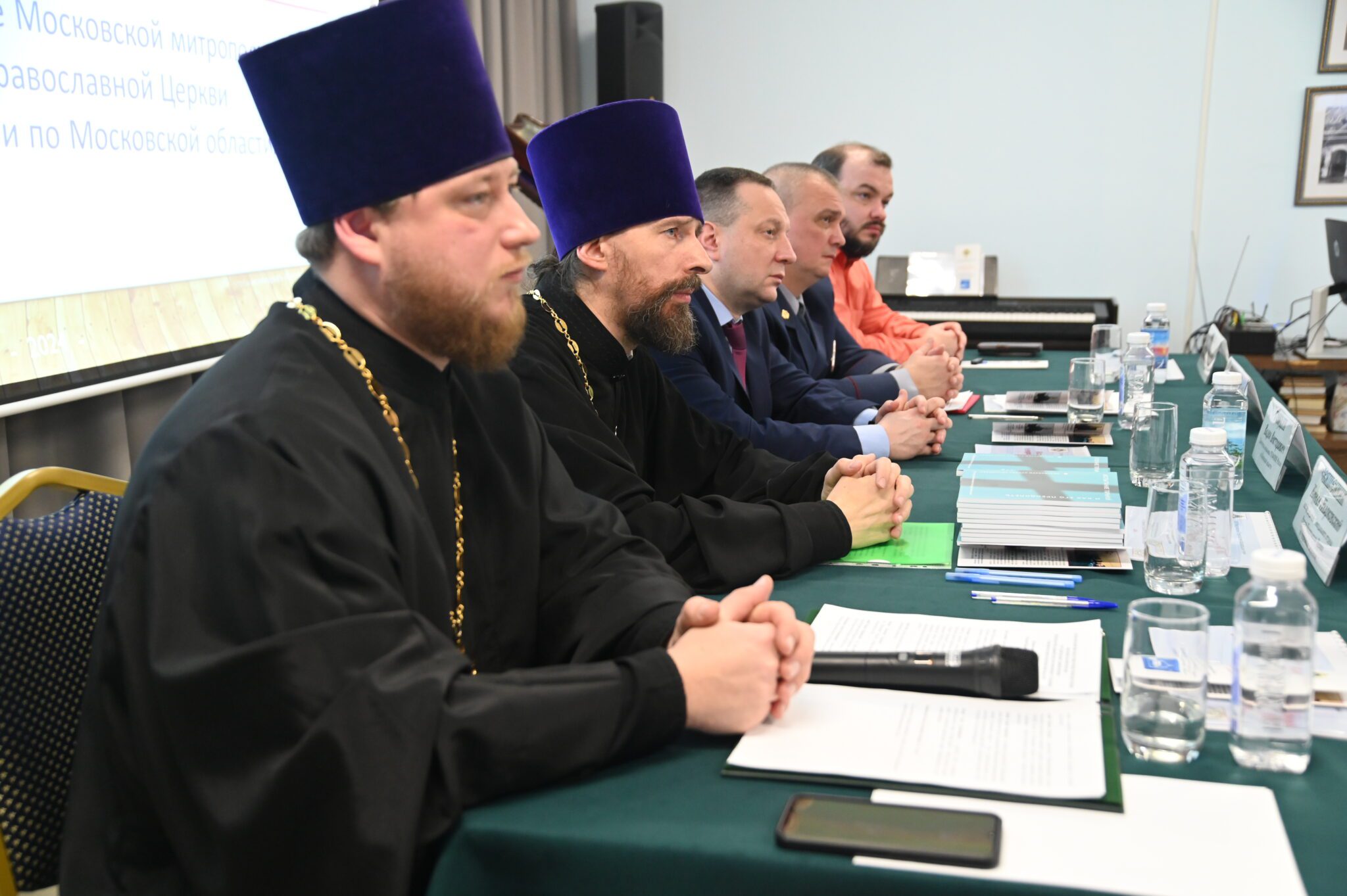 После богослужения в актовом зале приходского дома состоялось обсуждение вопросов взаимодействия духовенства и областного пенитенциарного ведомства, в котором приняли участие и.о. председателя Синодального отдела Русской Православной Церкви по тюремному служению иерей Кирилл Марковский, председатель Комиссии по тюремному служению, благочинный Можайского церковного округа иерей Иоанн Лобода, а также дховники исправительных учреждений на территории Одинцовской епархии: протоиерей Виталий Шовгор, иерей Сергий Постников и иерей Павел Роввин.