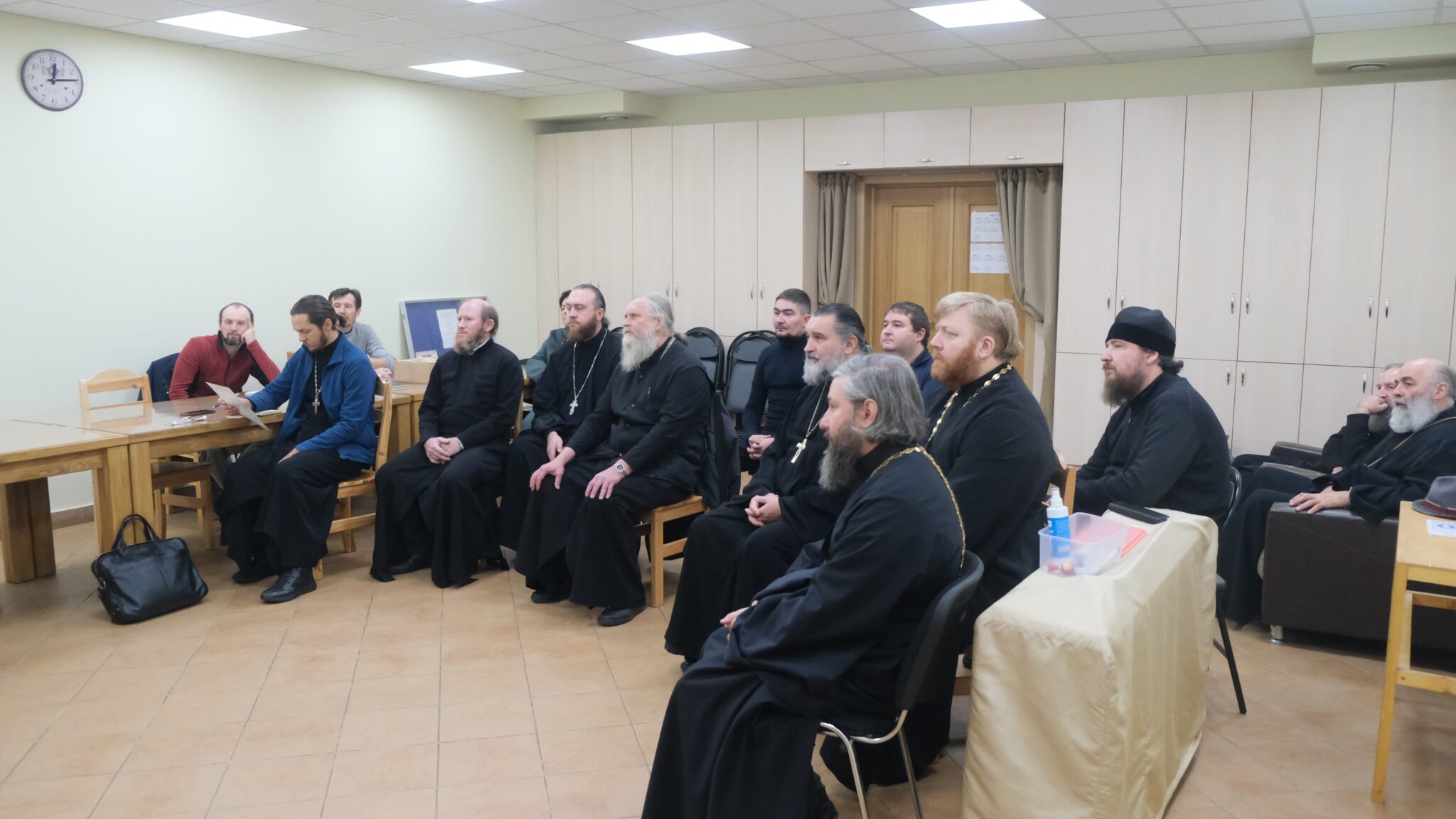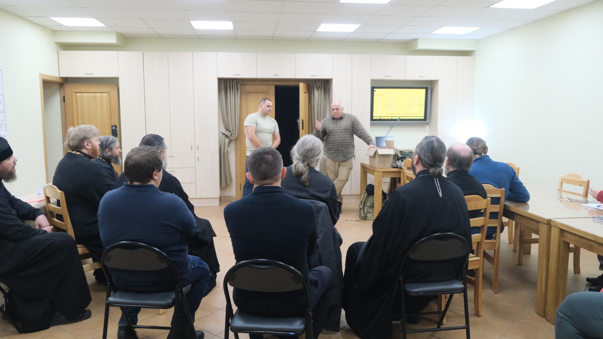 9 ноября в Вознесенском соборе г. Звенигорода был проведен семинар по тактической медицине для священнослужителей и прихожан храмов Звенигородского благочиния. Семинар провели инструктора Учебного Центра «СЕВЕР» Худобин Виктор Иванович и Никулин Алексей Геннадьевич, которые занимаются подготовкой священников перед отправкой в зону СВО для окормления военнослужащих. На семинаре инструктора рассказали и показали приемы догоспитальной помощи, порядок действий при эвакуации пострадавших в экстремальных ситуациях.