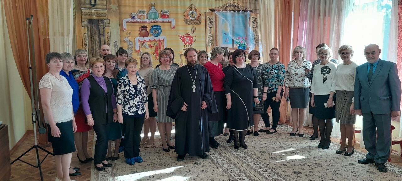 13 марта в дошкольном отделении №10 МОУ «Детгородковская СОШ» состоялся зональный семинар «Сохранение православных семейных традиций в детском саду». Мероприятие было подготовлено в рамках соглашения о сотрудничестве между отделом образования Волоколамского городского округа и Волоколамским благочинием. На семинаре участвовали делегации из нескольких муниципальных образований. С приветственным словом к присутствующим обратился директор образовательного комплекса Захаров Александр Михайлович. От Волоколамского благочиния выступил ответственный по работе с дошкольными образовательными учреждениями настоятель храма Рождества пресвятой Богородицы д. Шитьково иерей Димитрий Пищерков. Священник поблагодарил педагогическое сообщество за организацию работы по духовно-нравственному воспитанию подрастающего поколения, пожелал радости в масленичные дни и дал напутствие на великий пост. Воспитанники подготовительной к школе группы выступили с праздничной программой, посвящённой Масленице. Старший воспитатель Исправникова Е. В. рассказала о опыте работы педагогического коллектива по теме семинара. С докладом-презентацией из опыта работы выступила воспитатель МАДОУ ЦРР «Детский сад №15″ Мечта» г. Лотошино Смирнова С. А. О продолжении деятельности духовно-нравственного воспитания подростков выступил учитель МОУ «Детгородковская СОШ» руководитель Московского областного отделения братства православных следопытов Васильев В. В. с сообщением на тему «Миссия к детям через игру и дело». Практический мастер-класс по изготовлению семейного древа провела педагог-психолог дошкольного отделения №11 Тарапатина А. С. Для гостей была проведена экскурсия в уголок «русской избы» и комнату патриотического и духовно-нравственного воспитания. Подвели итоги семинара за масленичным чаепитием с блинами.