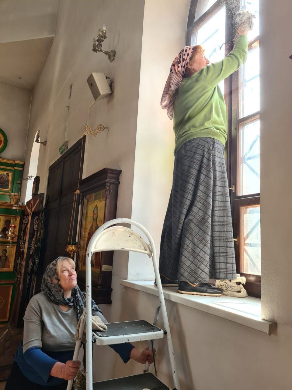29 марта в Данииловском храме пос. Нахабино прошел субботник. Прихожане дружно убрали территорию, привели в порядок цветники, помыли стены и окна в храме к Пасхе.