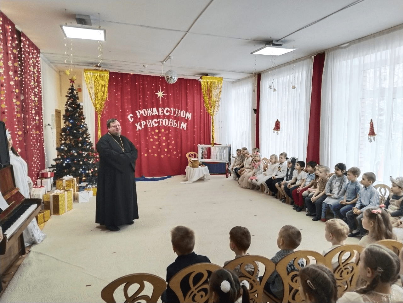 19 января 2026 года в детском саду «Снегирёк» состоялся тематический утренник, посвящённый праздникам Рождества Христова и Крещения Господня. Мероприятие посетил настоятель храма преподобного Серафима Саровского иерей Вадим Пименов. Программа утренника включала театрализованные сценки, стихи и песни, подготовленные детьми. Отец Вадим в своей приветственной речи, пояснил глубокую связь между рождением Спасителя и Его Крещением. Мероприятие организовано в рамках сотрудничества прихода храма преподобного Серафима Саровского и дошкольного образовательного учреждения, направленного на духовно-нравственное просвещение подрастающего поколения.