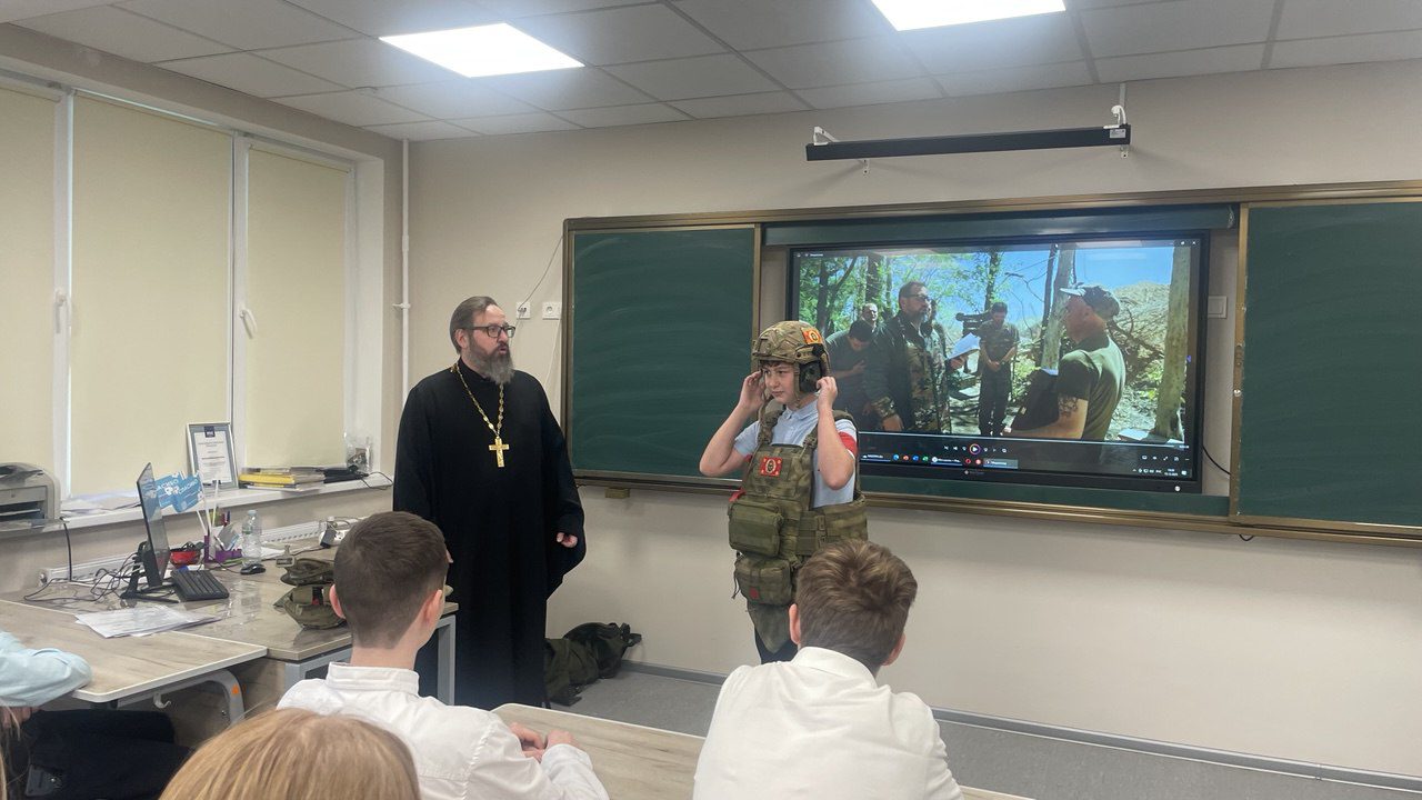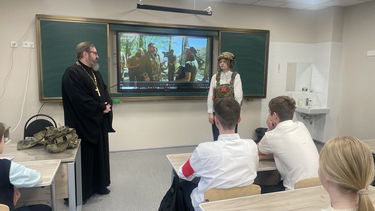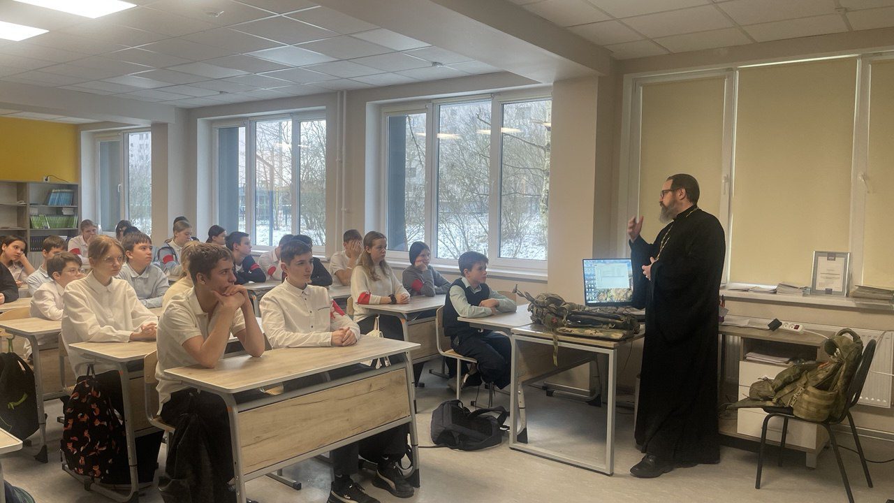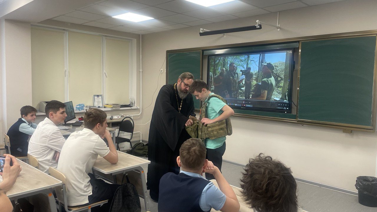 15 декабря настоятель Мироносицкого храма г. Истра иерей Павел Малкин посетил классный час у семиклассников Лицея г. Истра. Священнослужитель рассказал учащимся о вере на СВО и о служении духовенства в боевых условиях. Также отец Павел показал ребятам средства индивидуальной защиты, которые используются нашими воинами и священниками в т.ч., а желающие смогли на себе ощутить «тяжесть» ратного труда.