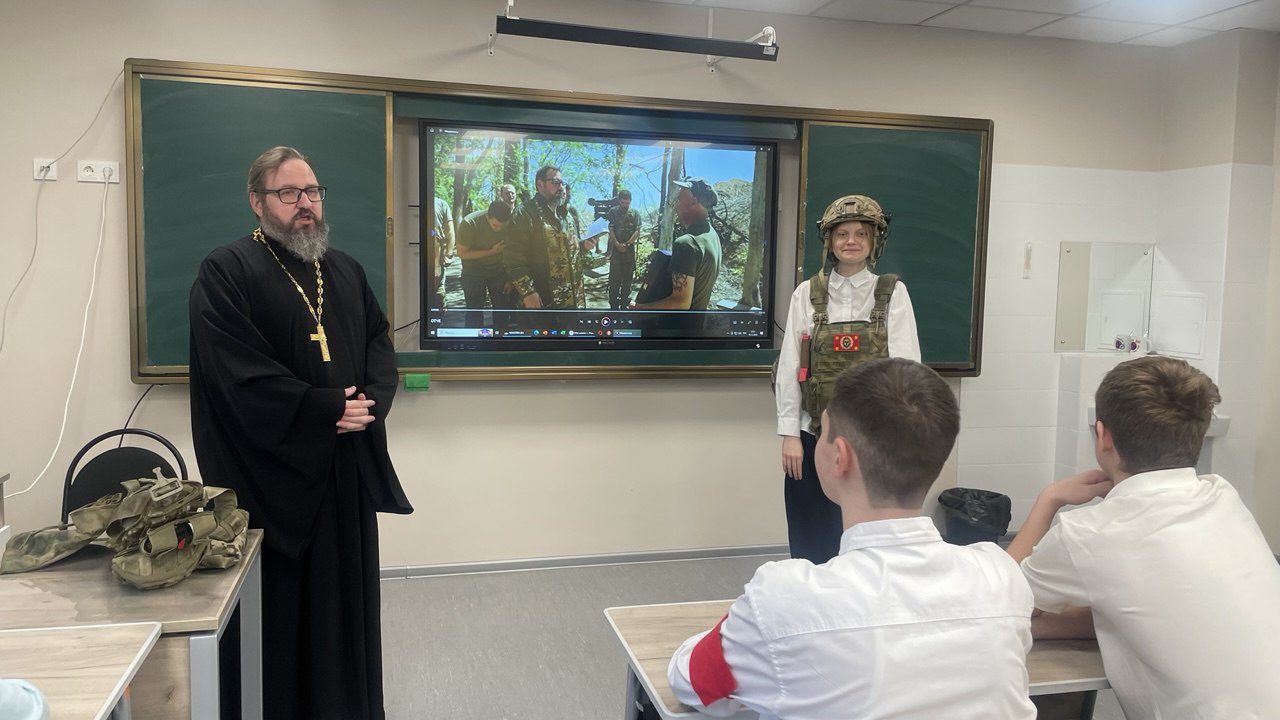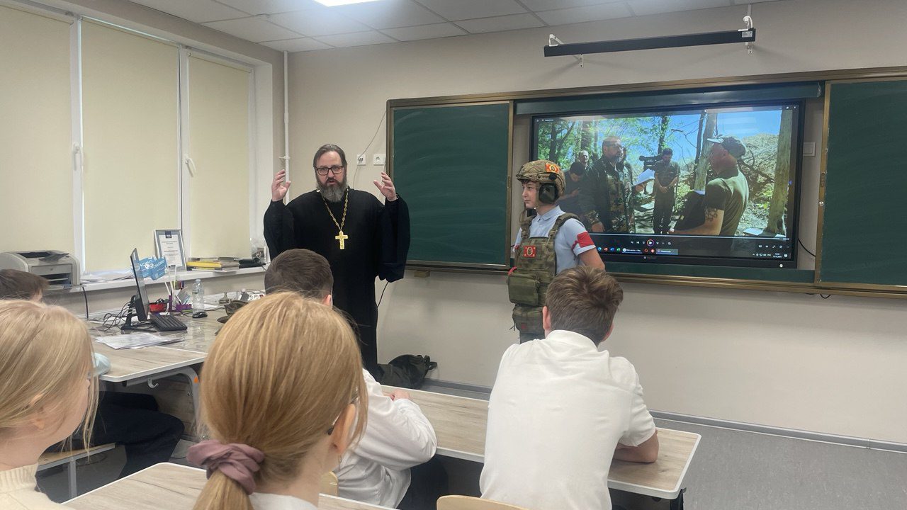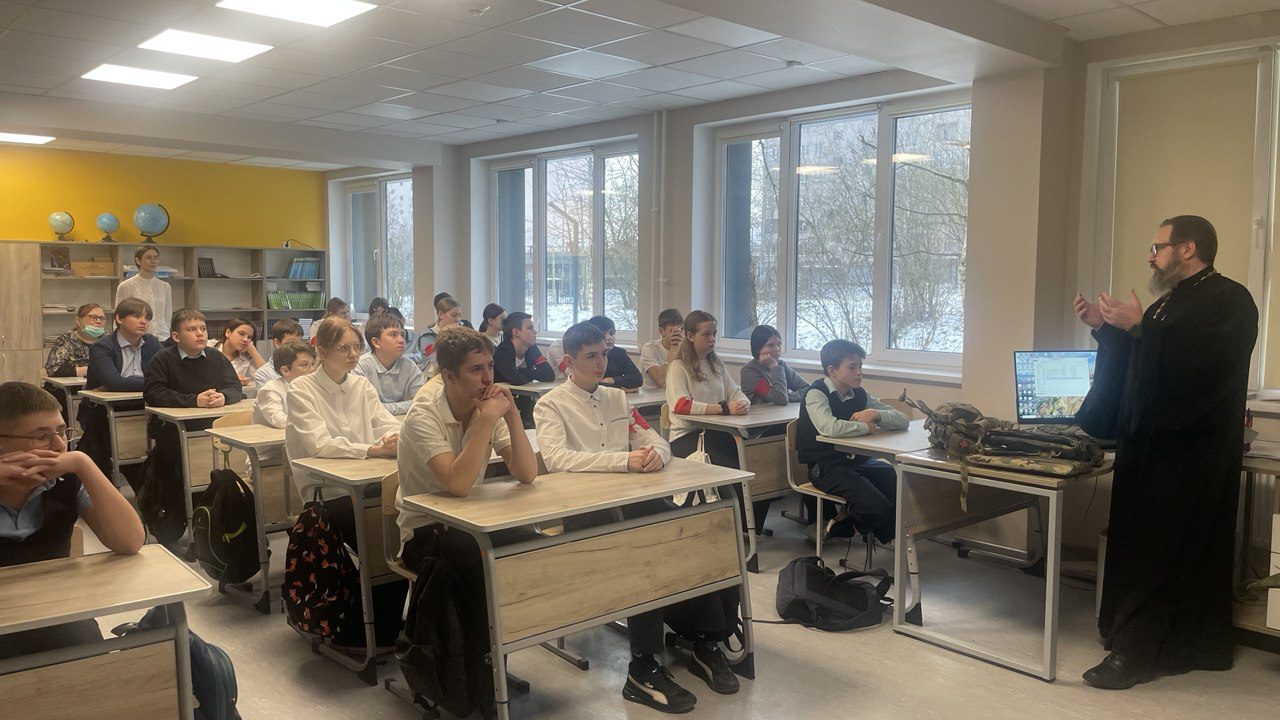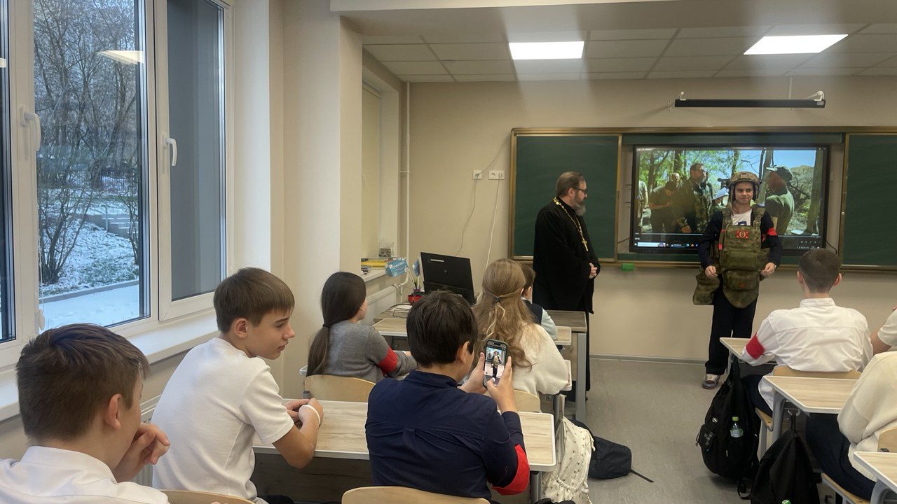 15 декабря настоятель Мироносицкого храма г. Истра иерей Павел Малкин посетил классный час у семиклассников Лицея г. Истра. Священнослужитель рассказал учащимся о вере на СВО и о служении духовенства в боевых условиях. Также отец Павел показал ребятам средства индивидуальной защиты, которые используются нашими воинами и священниками в т.ч., а желающие смогли на себе ощутить «тяжесть» ратного труда.