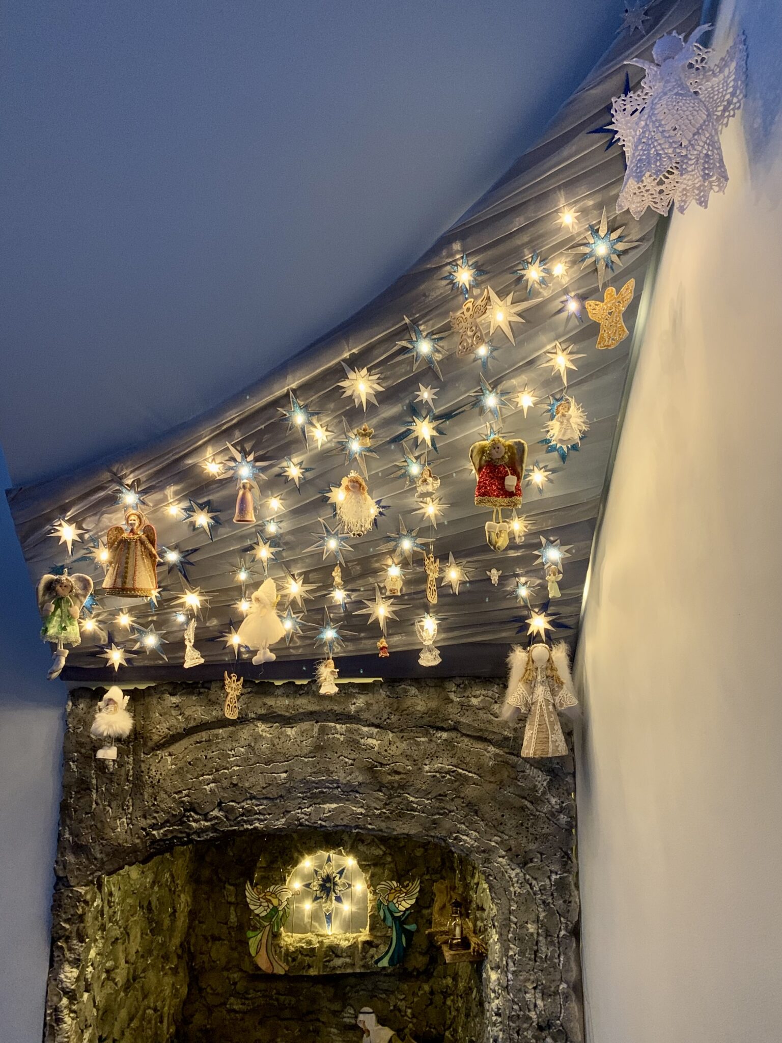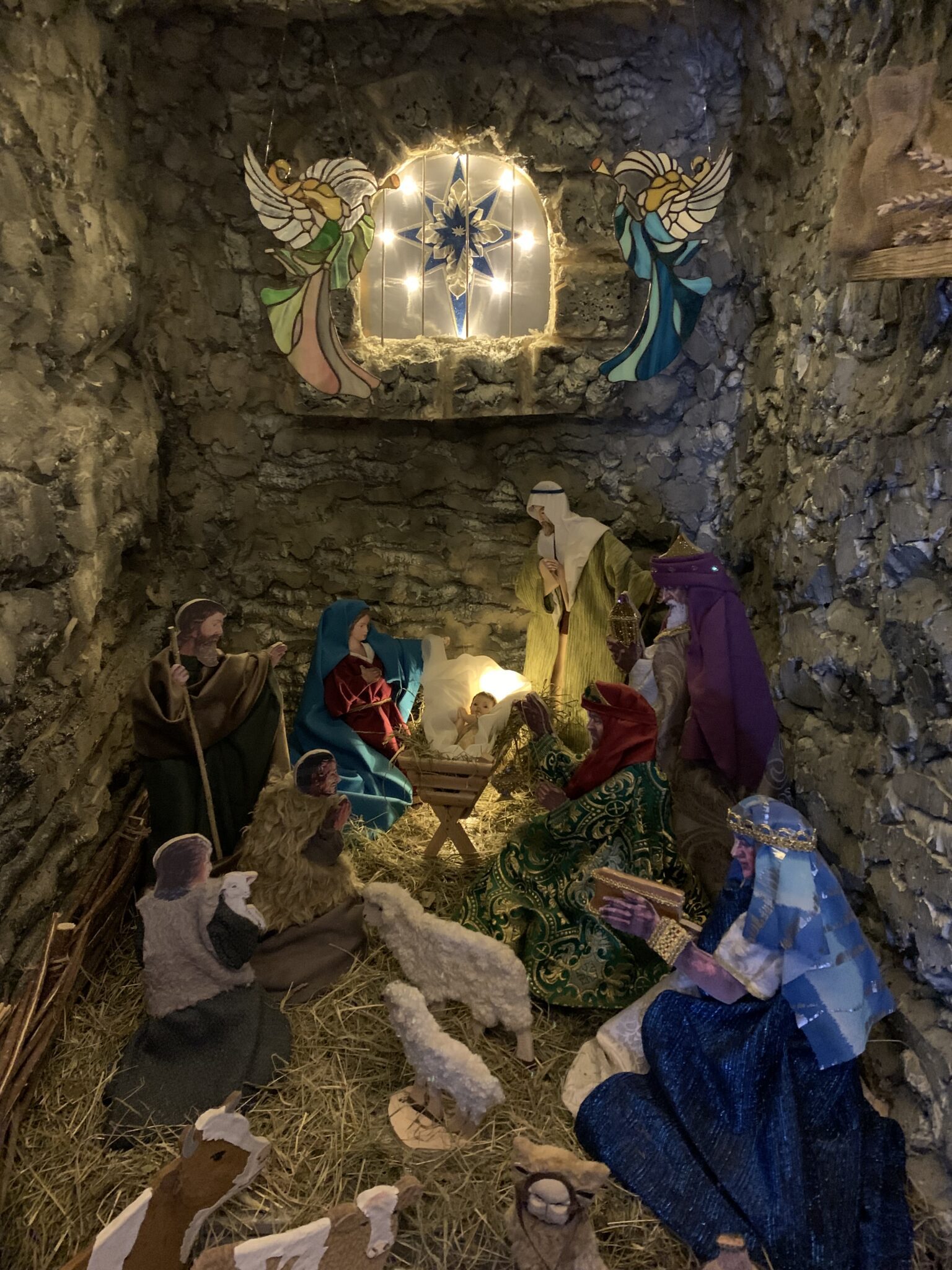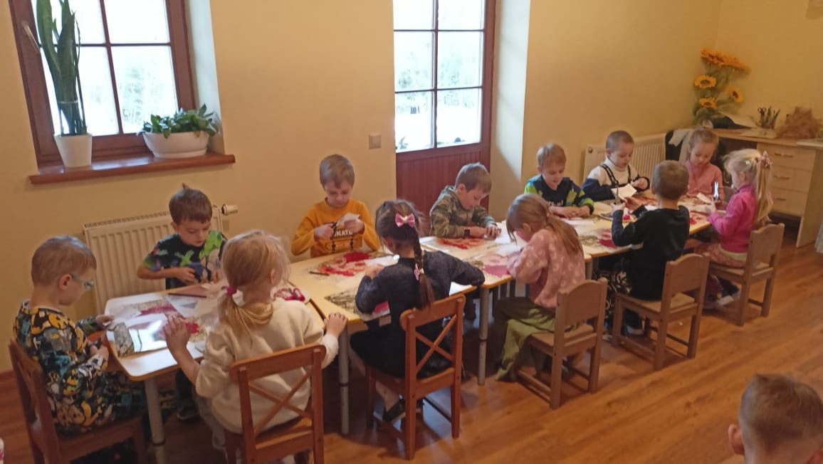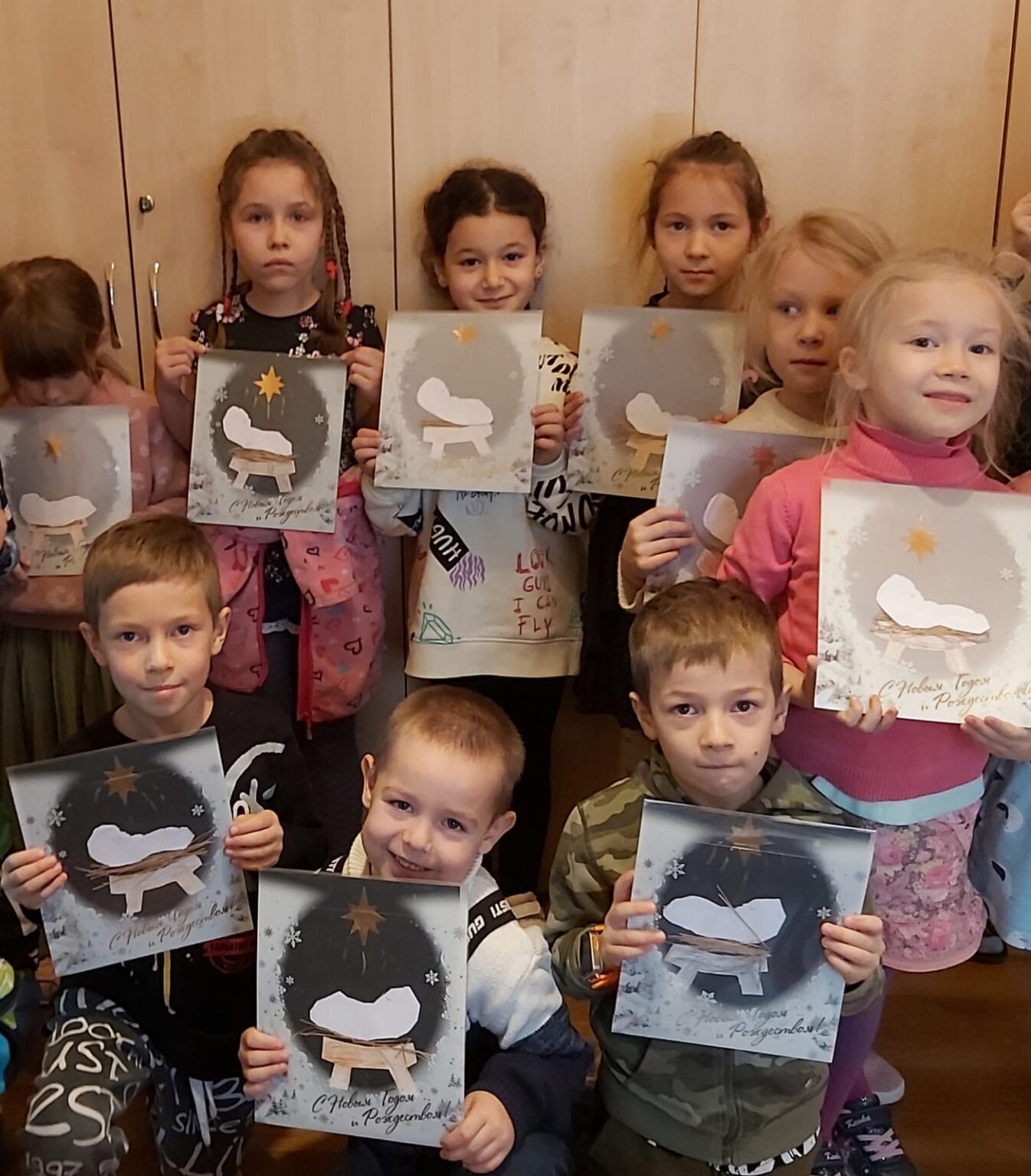 На творческом мастер-классе изготовили большую открытку с изображением яслей и звезды.