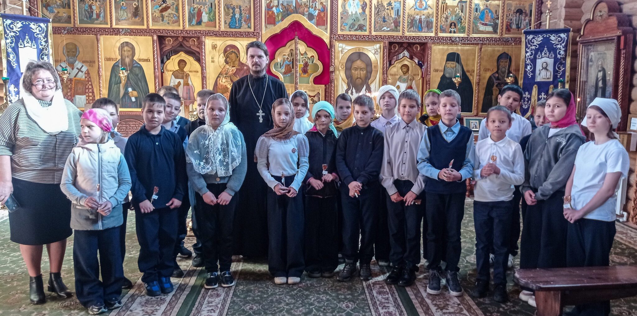 Затем батюшка рассказал школьникам об устройстве православного храма.