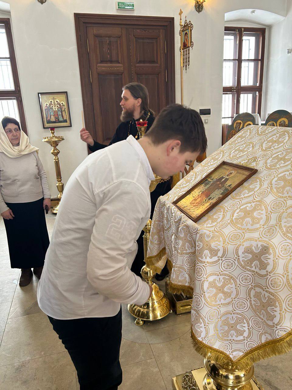 Затем все помолились перед святыми образами и зажгли свечи.
