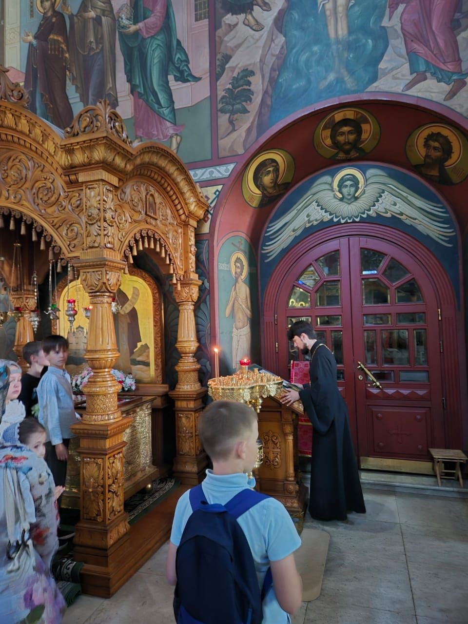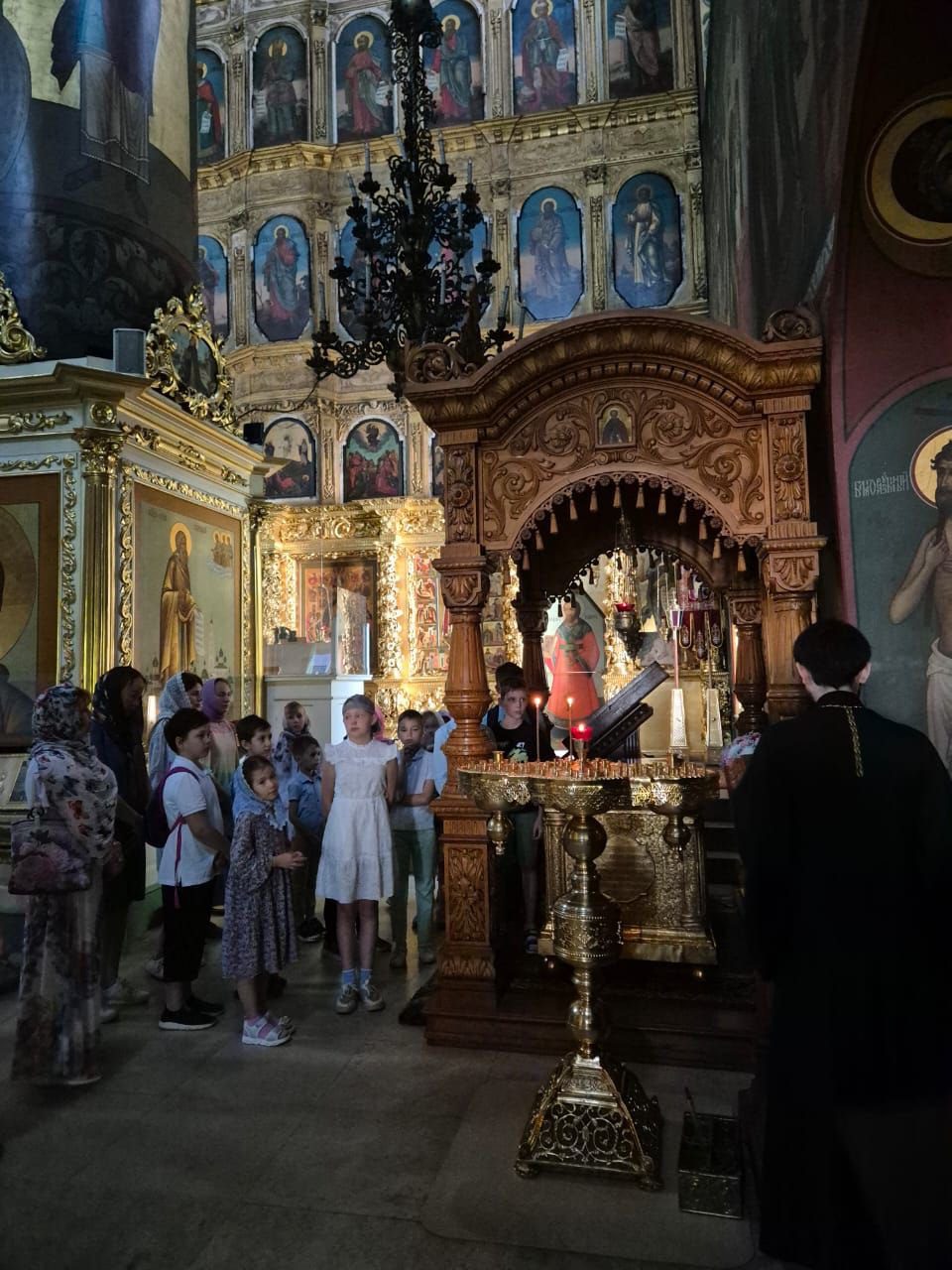 28 мая учащиеся 3Б класса Волоколамской гимназии №1 (классный руководитель Светлана Владимировна Нужная), родители и настоятель Ильинского храма с. Ильинское священник Евфимий Княжев, окормляющий начальные классы гимназии, совершили паломническую поездку в Иосифо-Волоцкий монастырь. Экскурсовод монастыря рассказала ребятам историю древней обители и краткое житие преподобного Иосифа Волоцкого. В Успенском соборе отец Евфимий прочитал молитву преподобному Иосифу и спел величание, а дети с родителями приложились к мощам преподобного и иконе Божией Матери “Волоколамская”.