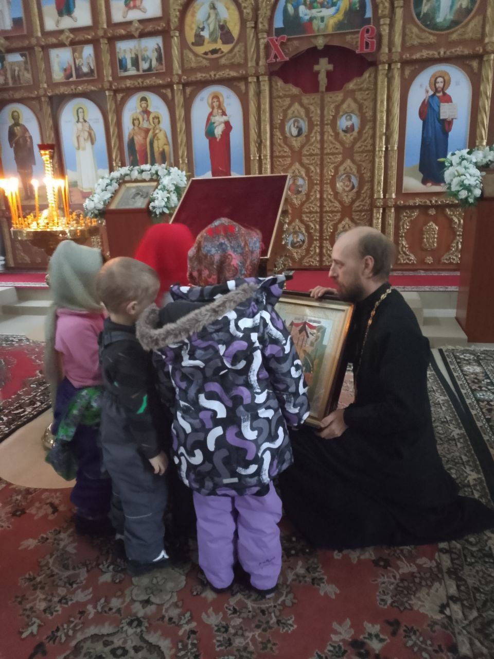 Маленьких гостей встретил настоятель храма иерей Андрей Николаев, окормляющий это дошкольное учреждение. Батюшка провел экскурсию и ответил на вопросы детишек.
