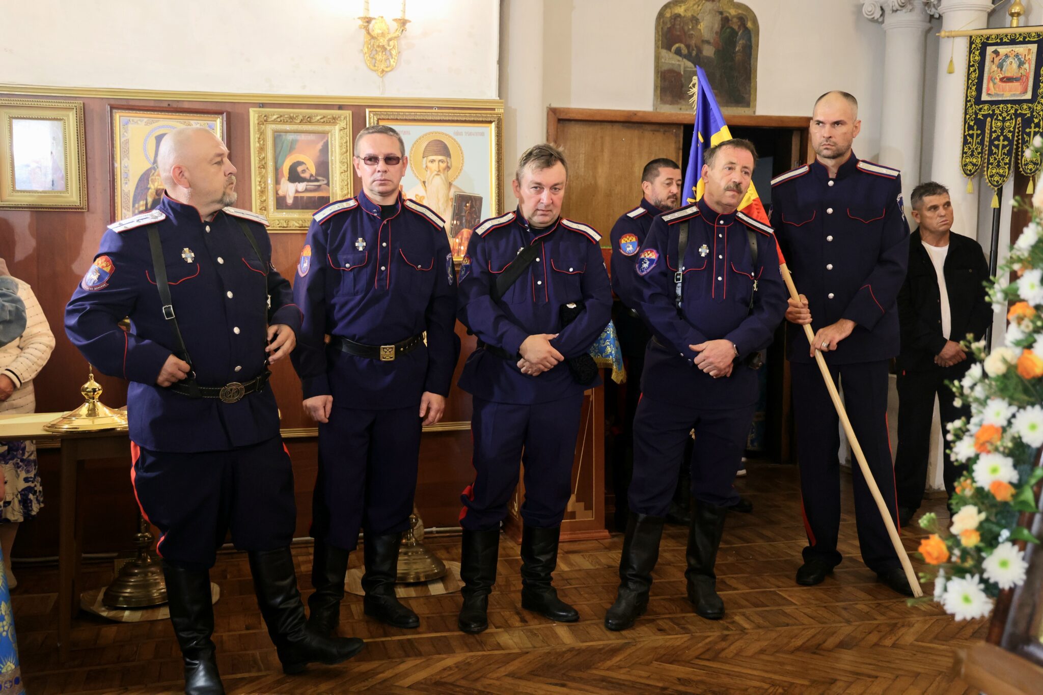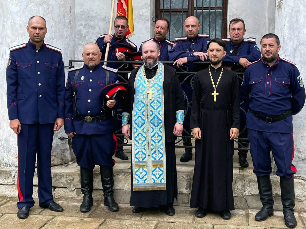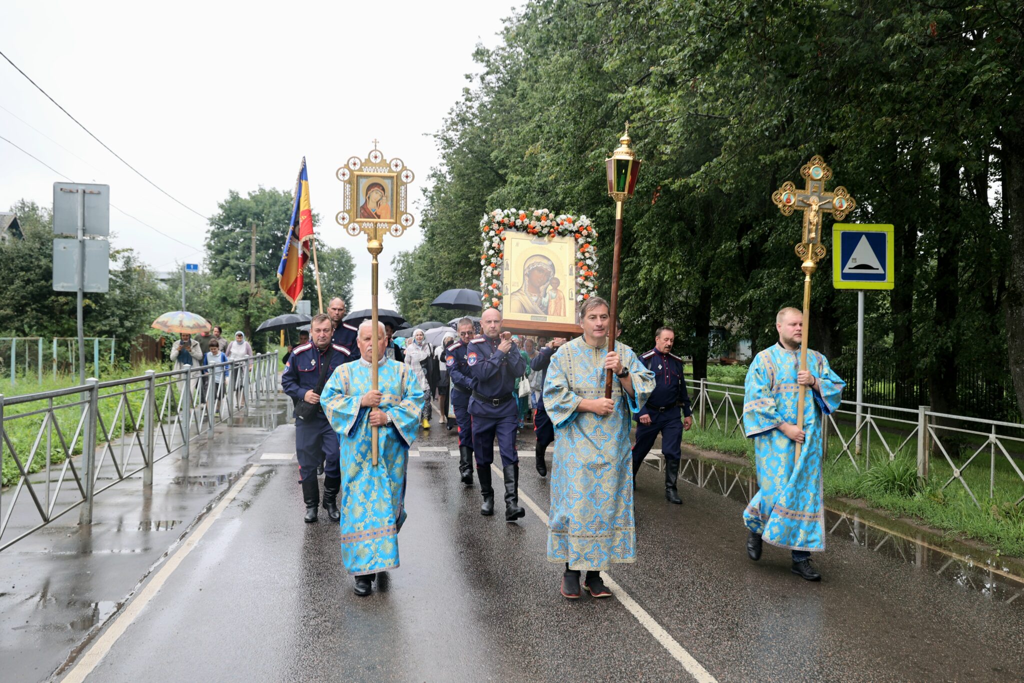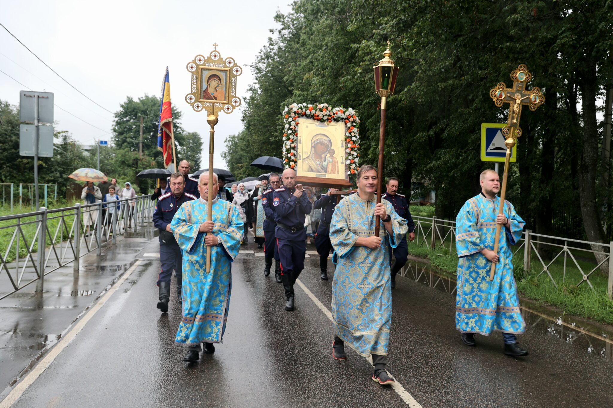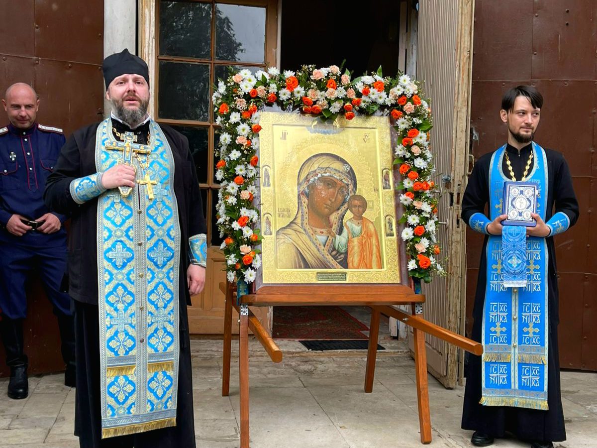 Казаки хутора “Волоколамский” несли приходскую святыню — чтимый Казанский образ Божией Матери с предстоящими новомучениками Ярополецкими.