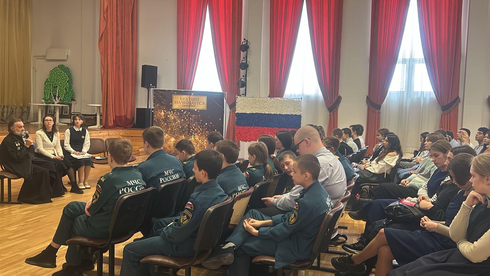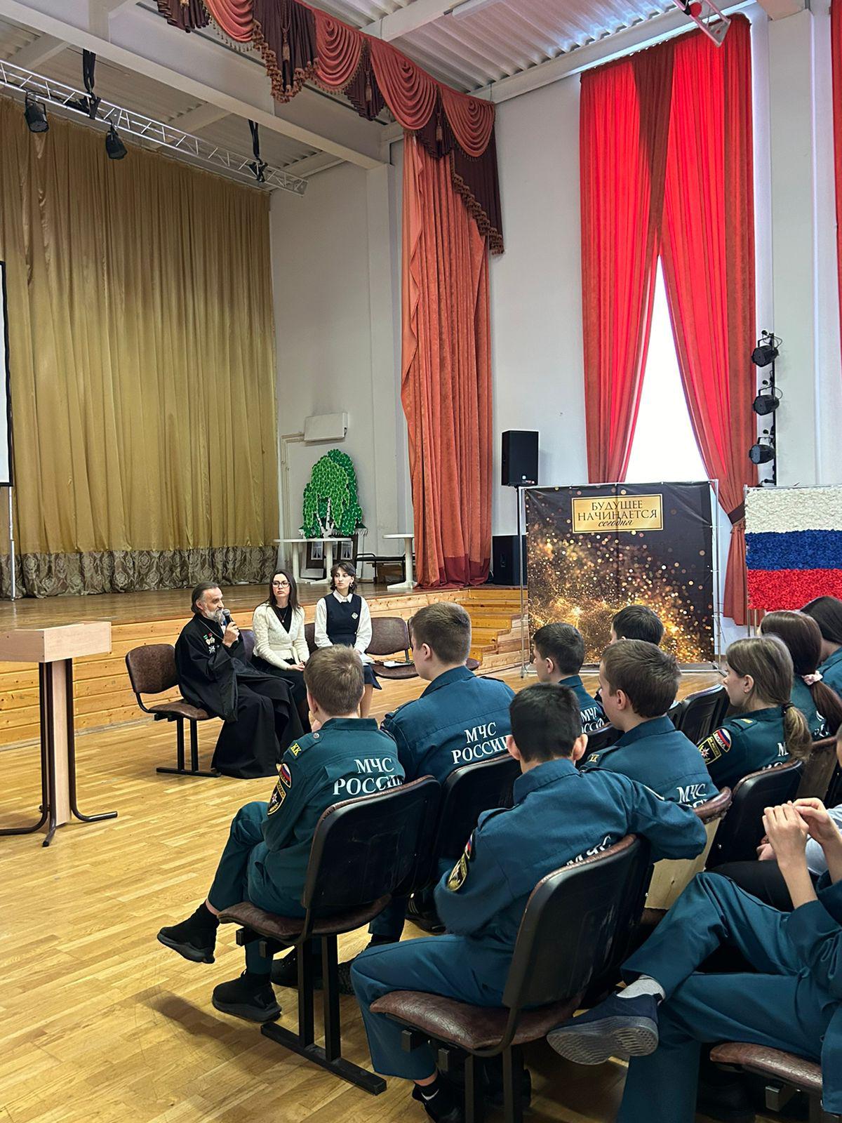 13 декабря, в актовом зале Звенигородской общеобразовательной школы “КвантУм” им. Героя Советского Союза Василия Фабричнова состоялась встреча с клириком Вознесенского Собора г. Звенигорода священником Виталием Кондратовым. Отец Виталий человек с необычной судьбой. В прошлом офицер Вооруженных сил СССР, прошедший Афганскую войну, перенесший ранения и получивший множество воинских наград. Учащимся школы “КвантУм” и Звенигородской Православной гимназии во имя прп. Саввы Сторожевского, пришедшим на встречу, отец Виталий рассказал о своей жизни и ответил на интересующие ребят вопросы.