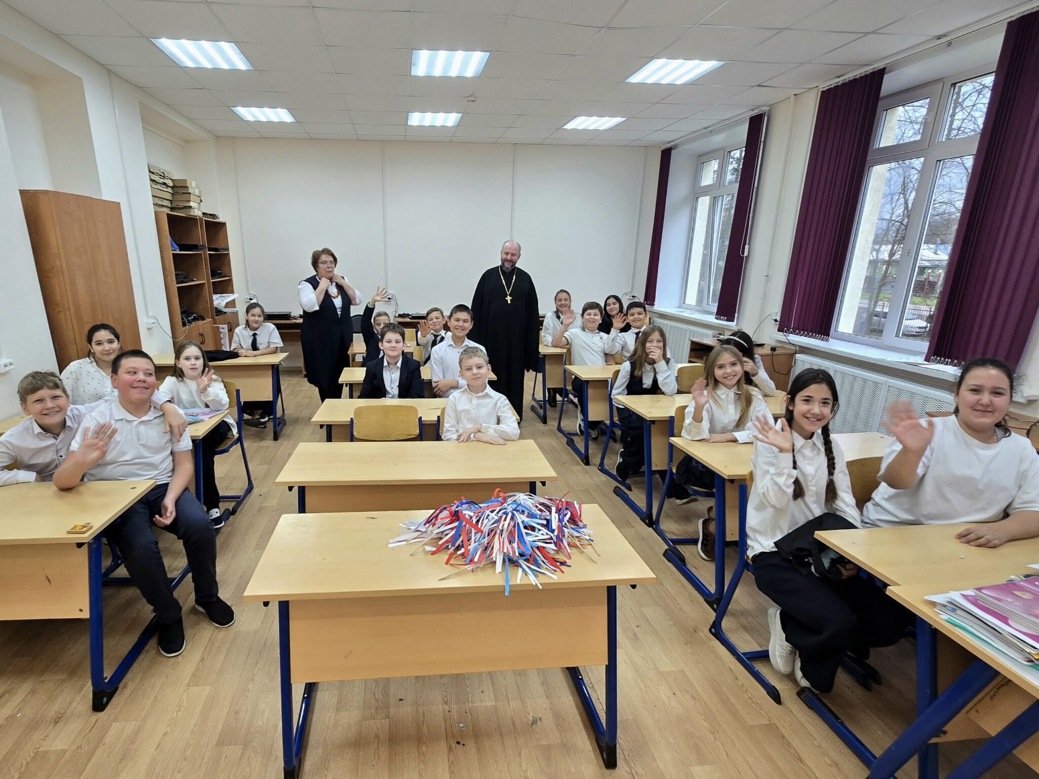 По окончании мероприятия отец Михаил посетил 5 класс, где пообщался с детьми и классным руководителем Анной Александровной Болотовой.