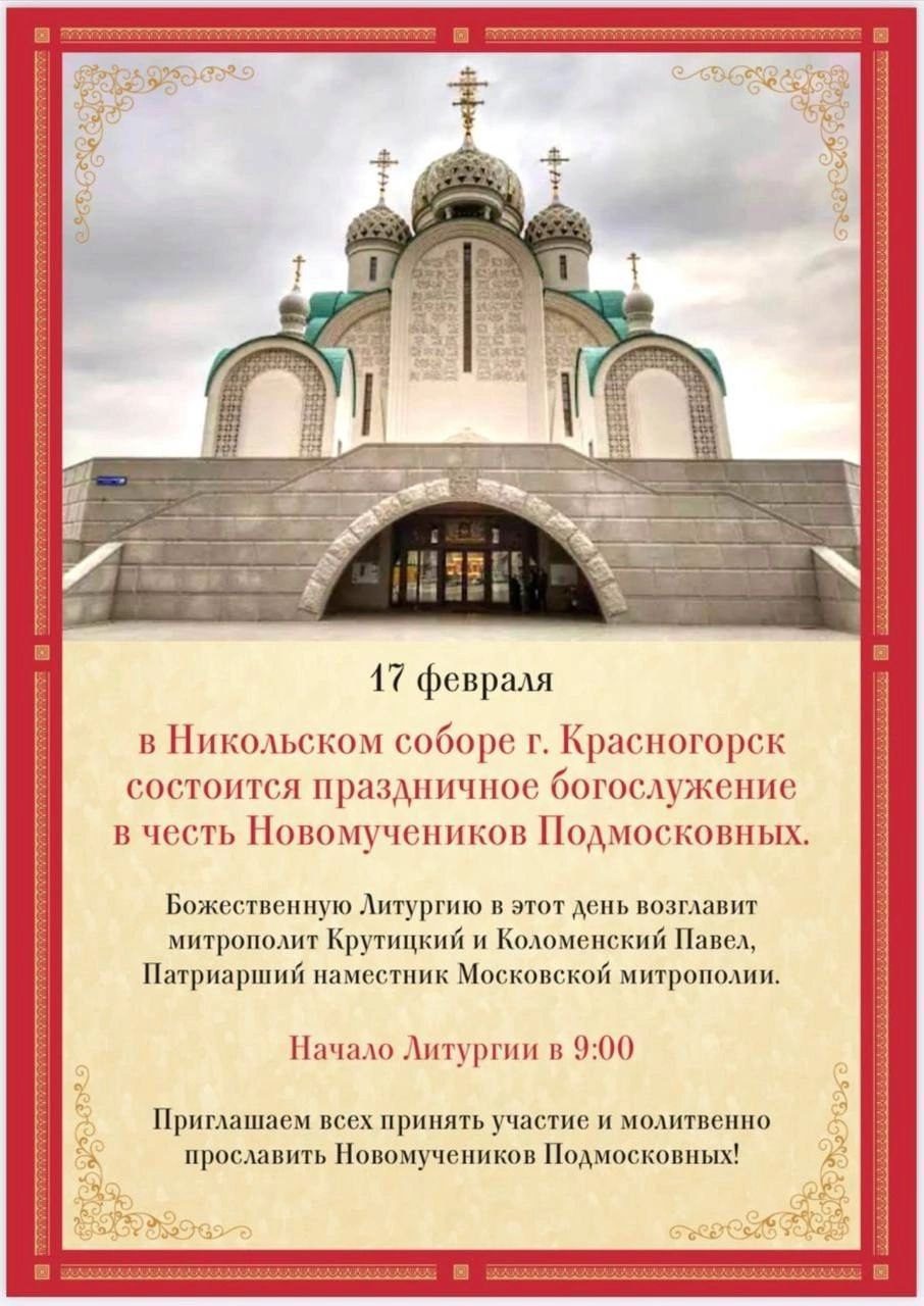 17 февраля, в Никольском соборе г. Красногорск состоится праздничное богослужение в честь Новомучеников Подмосковных.