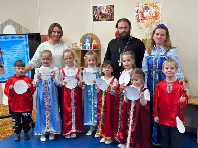 15 октября иерей Димитрий Пищерков, настоятель храма Рождества Пресвятой Богородицы д. Шитьково посетил дошкольное отделение №10 МОУ “Детгородковская СОШ”, где в старшей/подготовительной к школе группе