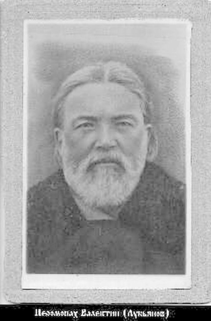 Преподобномученик Валентин родился 2 августа 1875 года в Калужской губернии в семье крестьянина Иакова Лукьянова и в крещении наречен был Василием. Образование он получил в церковноприходской школе; женился, и у них с женой родилось трое детей, но вскоре после рождения последнего ребенка Василий овдовел. В 1906 году он поступил в Троице-Сергиеву Лавру и 26 мая 1908 года был зачислен в нее послушником; как имеющий прекрасные музыкальные и певческие дарования, он был определен на клирос. 7 ноября 1915 года Василий был пострижен в монашество и наречен Валентином.