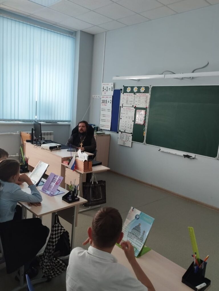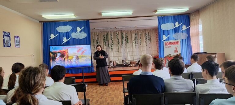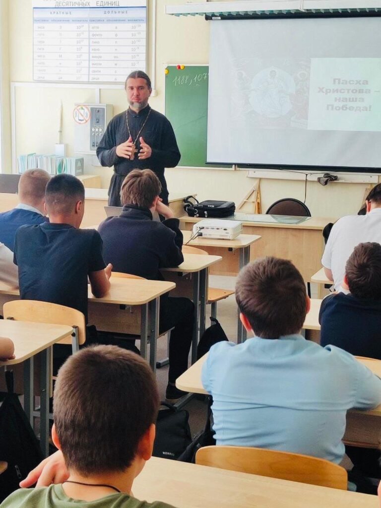 22 мая в МОУ СОШ «Созвездие Вента» п. Уваровка Можайского благочиния прошла встреча учащихся всех 6х и 7х классов с настоятелем Серафимовского храма пос. Уваровка, свящ. Ярославом Ерофеевым. Встреча прошла в рамках пасхальной миссионерской акции «Пасха Христова – наша Победа».