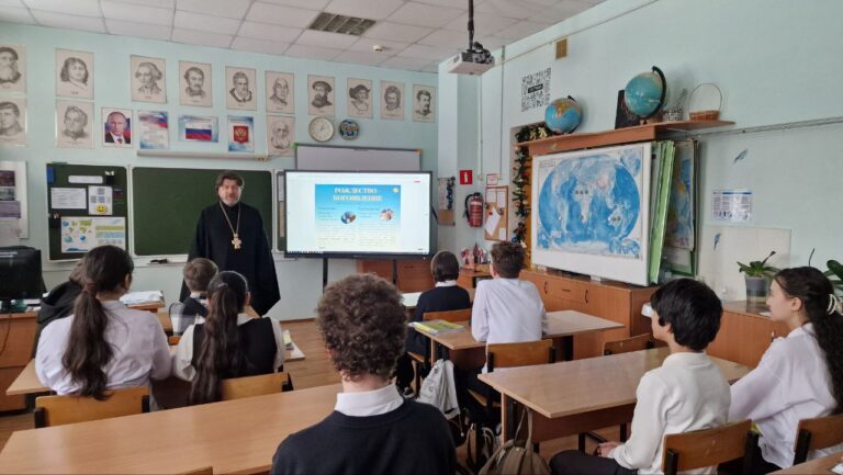 Разговор со священником о Рождестве Христовом в СОШ №2 им. М. А. Пронина г. Звенигорода