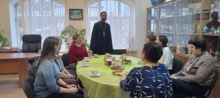 24 декабря в детском саду №7 «Теремок» была организована встреча педагогического коллектива с клириком Георгиевского храма г. Дедовск, священником Алексием Кравченко, на тему: «Задай вопрос священнослужителю». Беседа прошла в непринуждённой обстановке за чаепитием. Заведующие и воспитатели задавали вопросы, рассказывали о