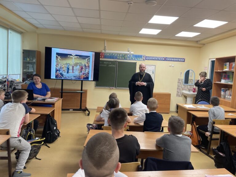 В среду Страстной седмицы и среду Светлой седмицы на внеурочные занятия в Волоколамскую школу-интернат приходили священник Михаил Завитаев, настоятель Казанского и Иоанно-Предтеченского храма с. Ярополец и священник Борис Зинин, настоятель Храма благоверного князя Олега Брянского с. Осташёво. Беседа была посвящена